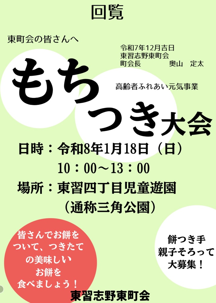 東習志野東町会や東習志野連合町会で開催されるイベントや情報を共有しましょう!