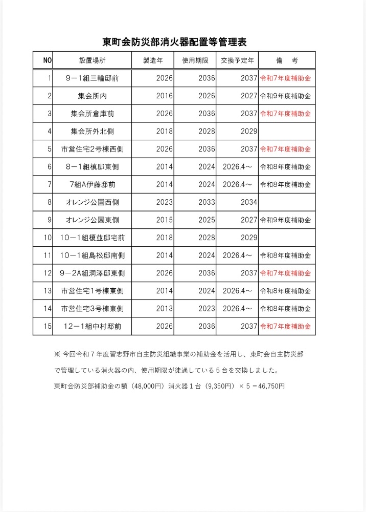 東町会内の消化器についてです。